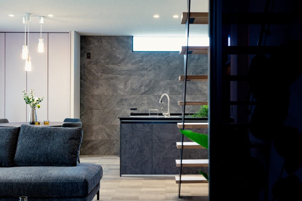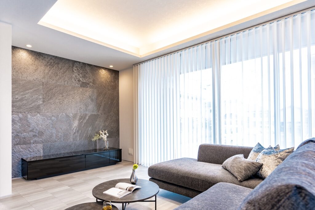奥様と中学生のお嬢様も、モノトーンで落ち着いた空間がお好きとのことで、ご家族3人が心地よく過ごせる“パーソナルで上質な家”をテーマに、間取りのアドバイスから外装・内装材、照明計画、家具、カーテンに至るまで、トータルでコーディネートさせていただきました。
