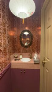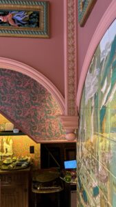・梁型に貼られた花柄クロス